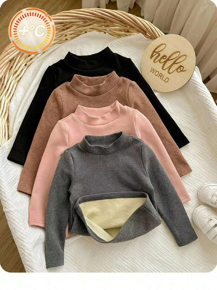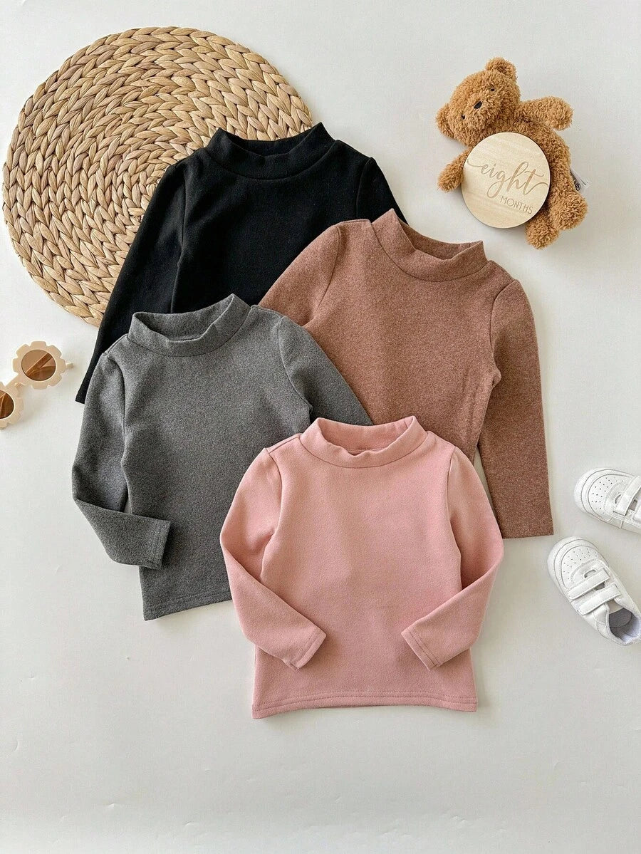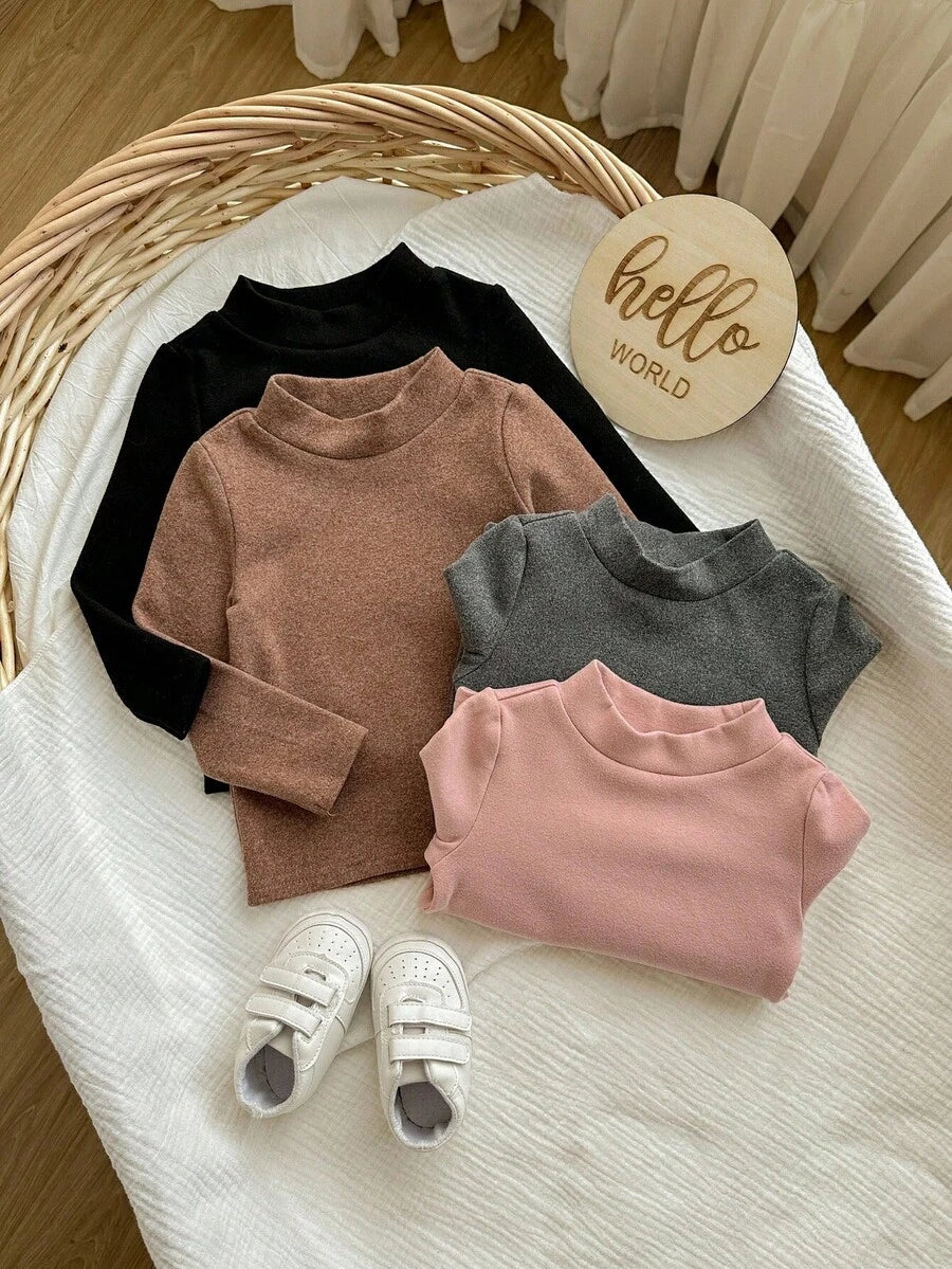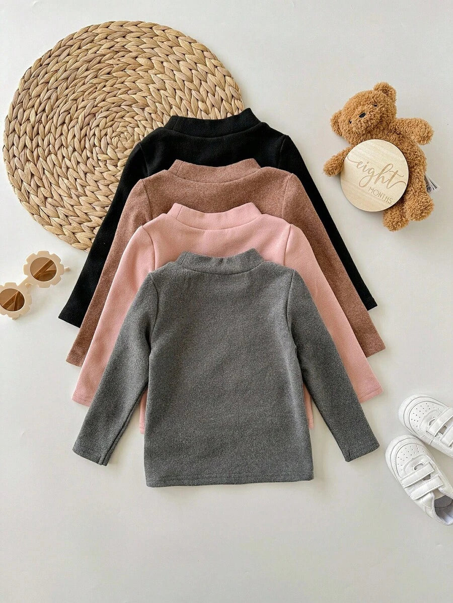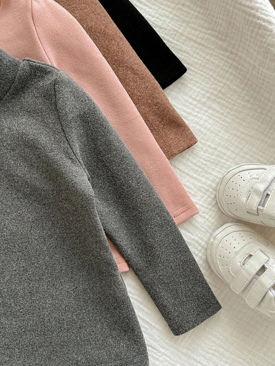 Blusa de manga larga de punto de unicolor versatil y casual para bebe nina