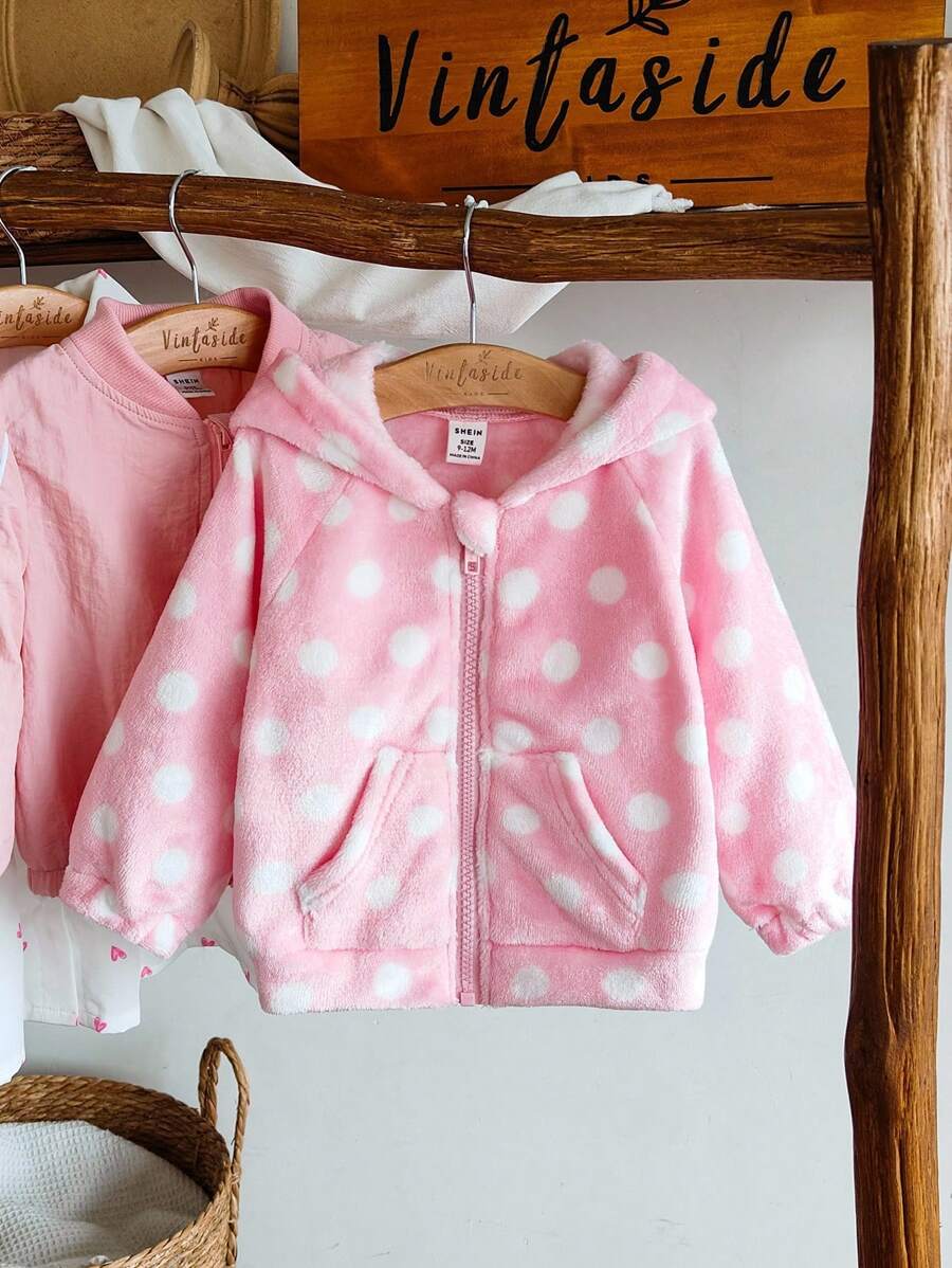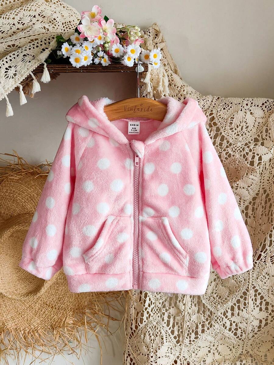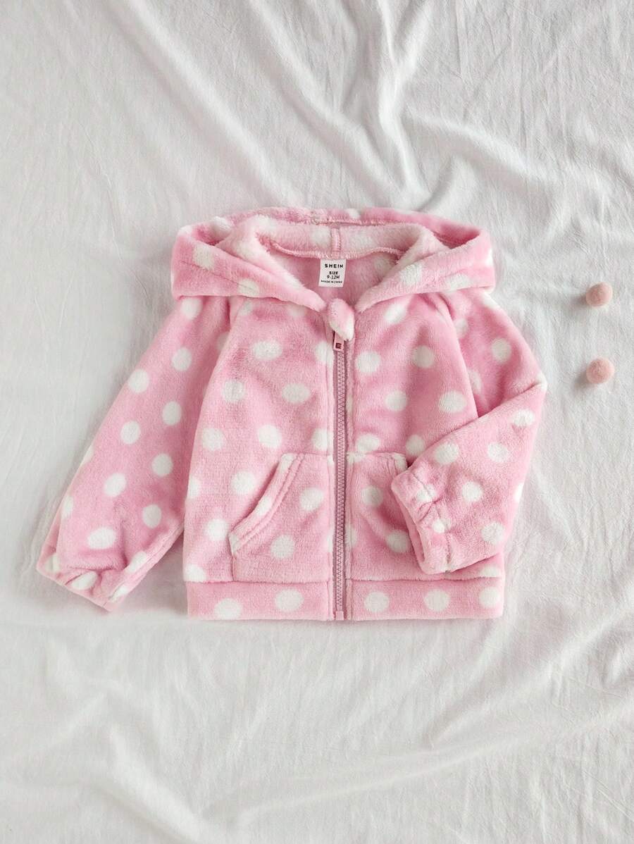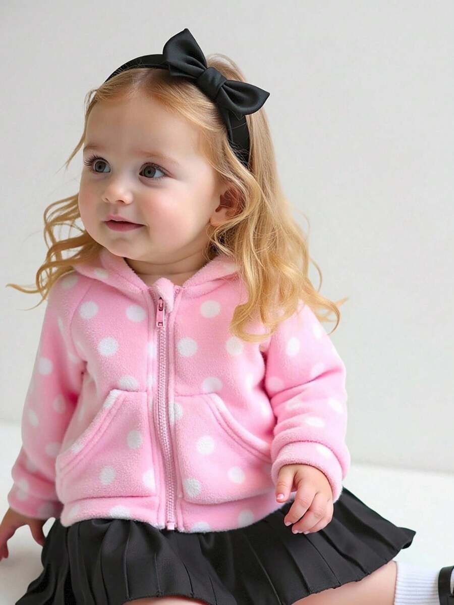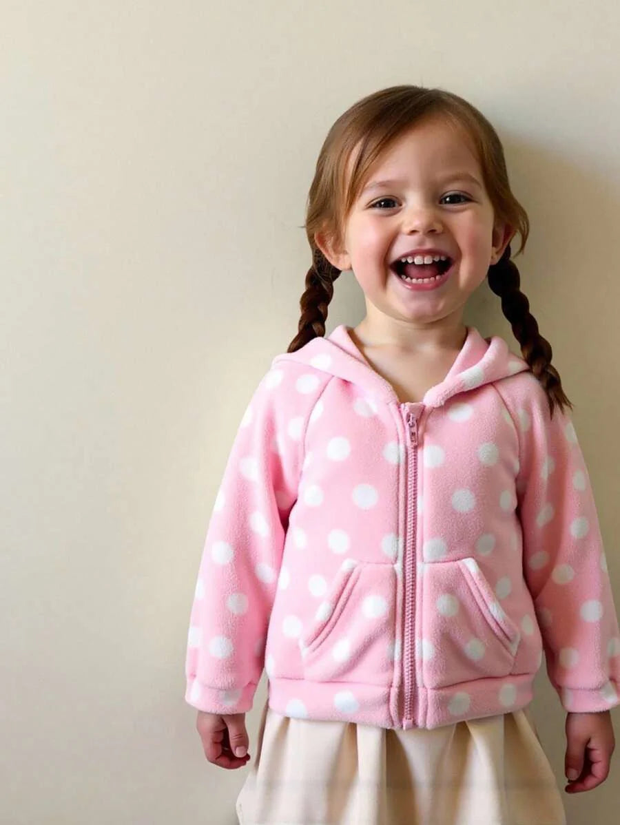 Kids chaqueta de cremallera con buzos con capucha de felpa con lunares cute y versatil para nina bebe, apropiada para uso diario en primavera, otono e invierno
