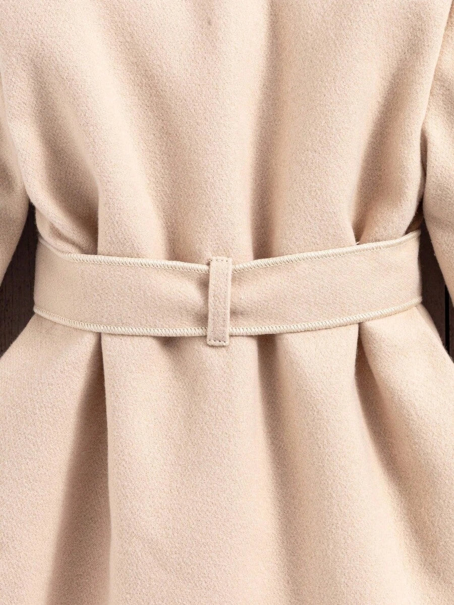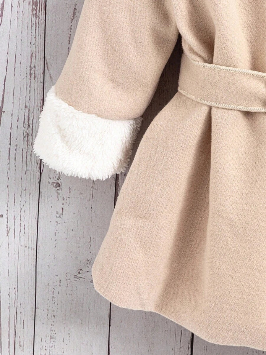 Abrigo de lana con cuello de piel sintetica de manga larga, estilo elegante y clasico para ninas pequenas en otono/invierno