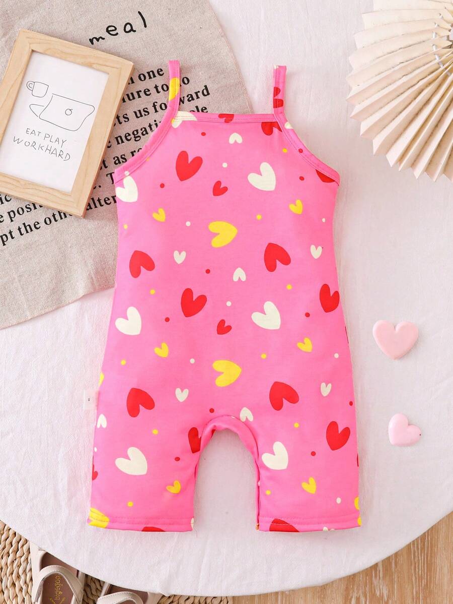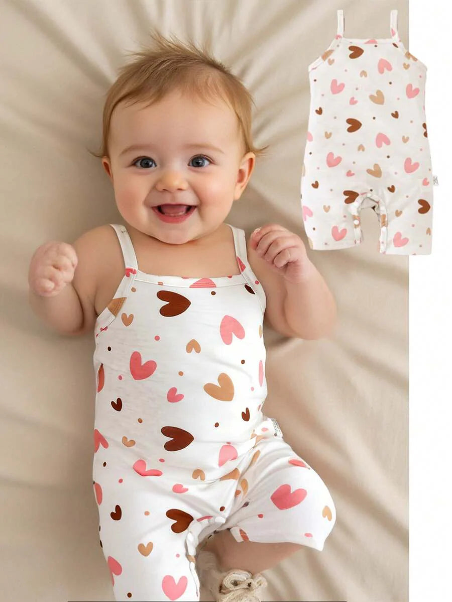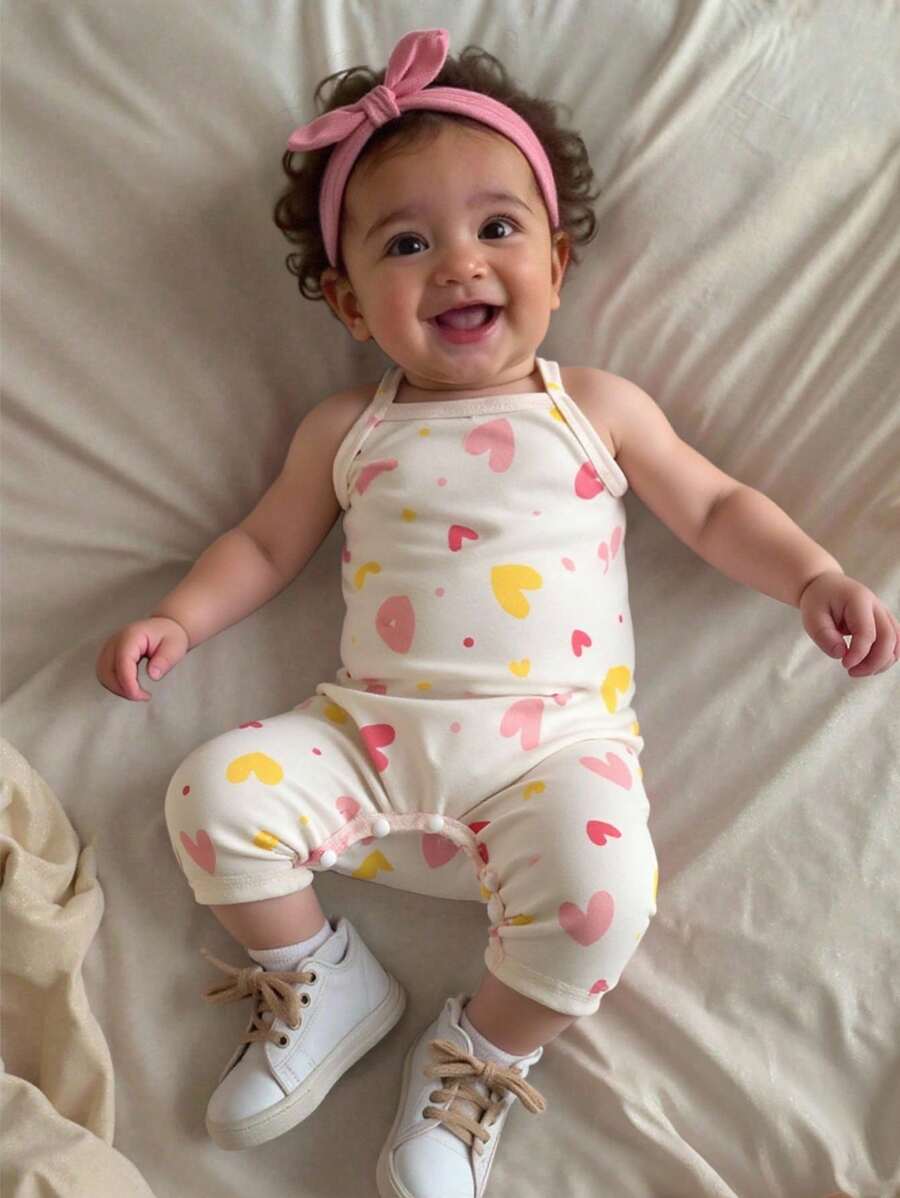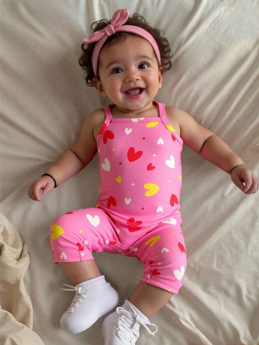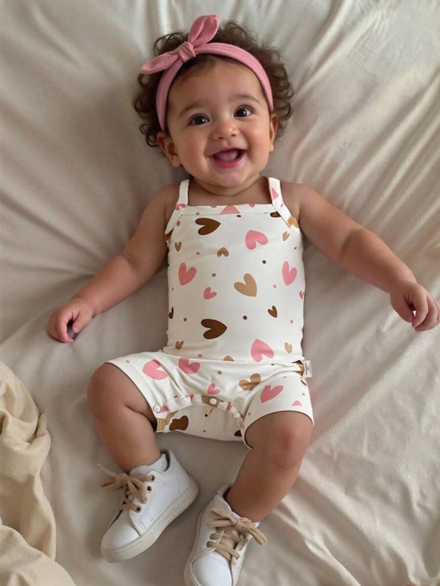 Bebe/nina pequena peto sin mangas con estampado de corazones, conjunto casual comodo y versatil adecuado para que los bebes usen en verano en cualquier ocasion, facil de poner y quitar