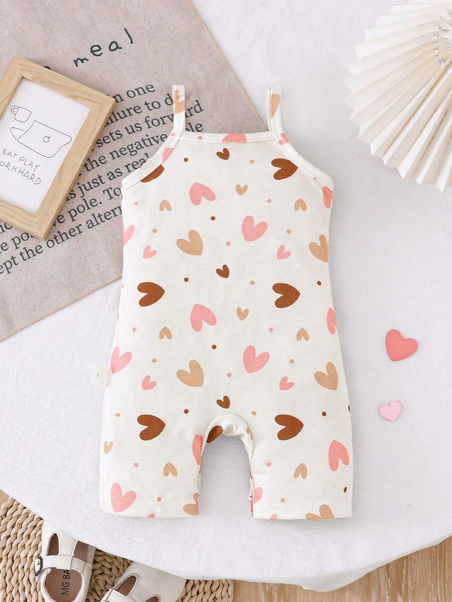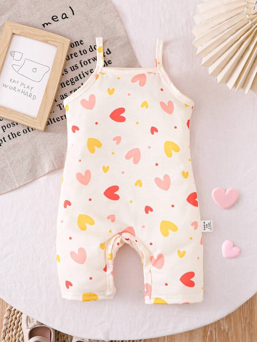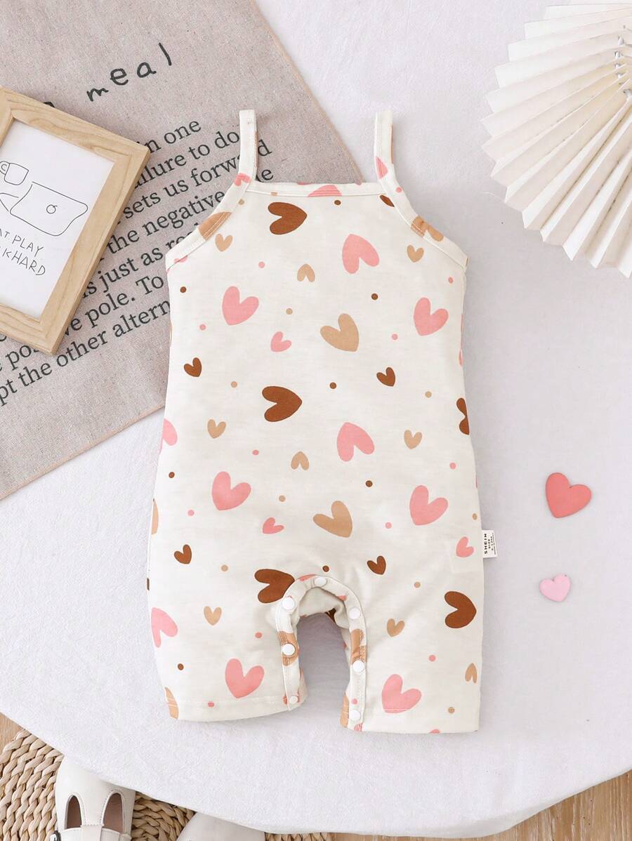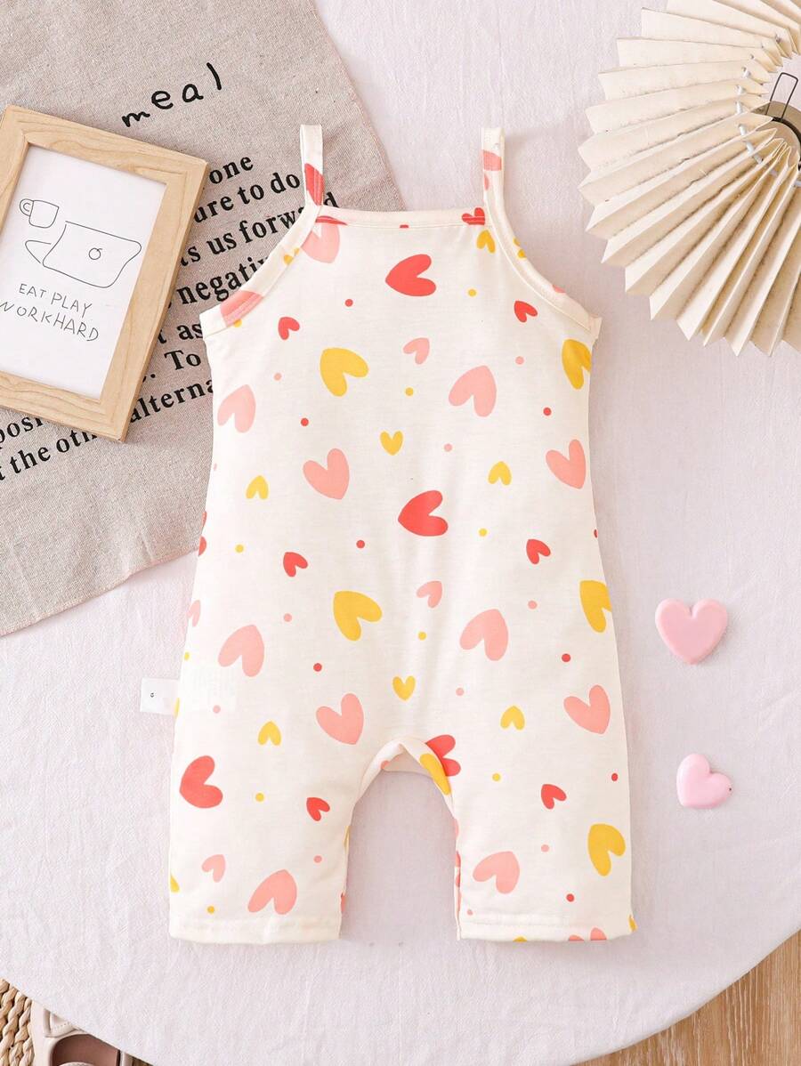 Bebe/nina pequena peto sin mangas con estampado de corazones, conjunto casual comodo y versatil adecuado para que los bebes usen en verano en cualquier ocasion, facil de poner y quitar