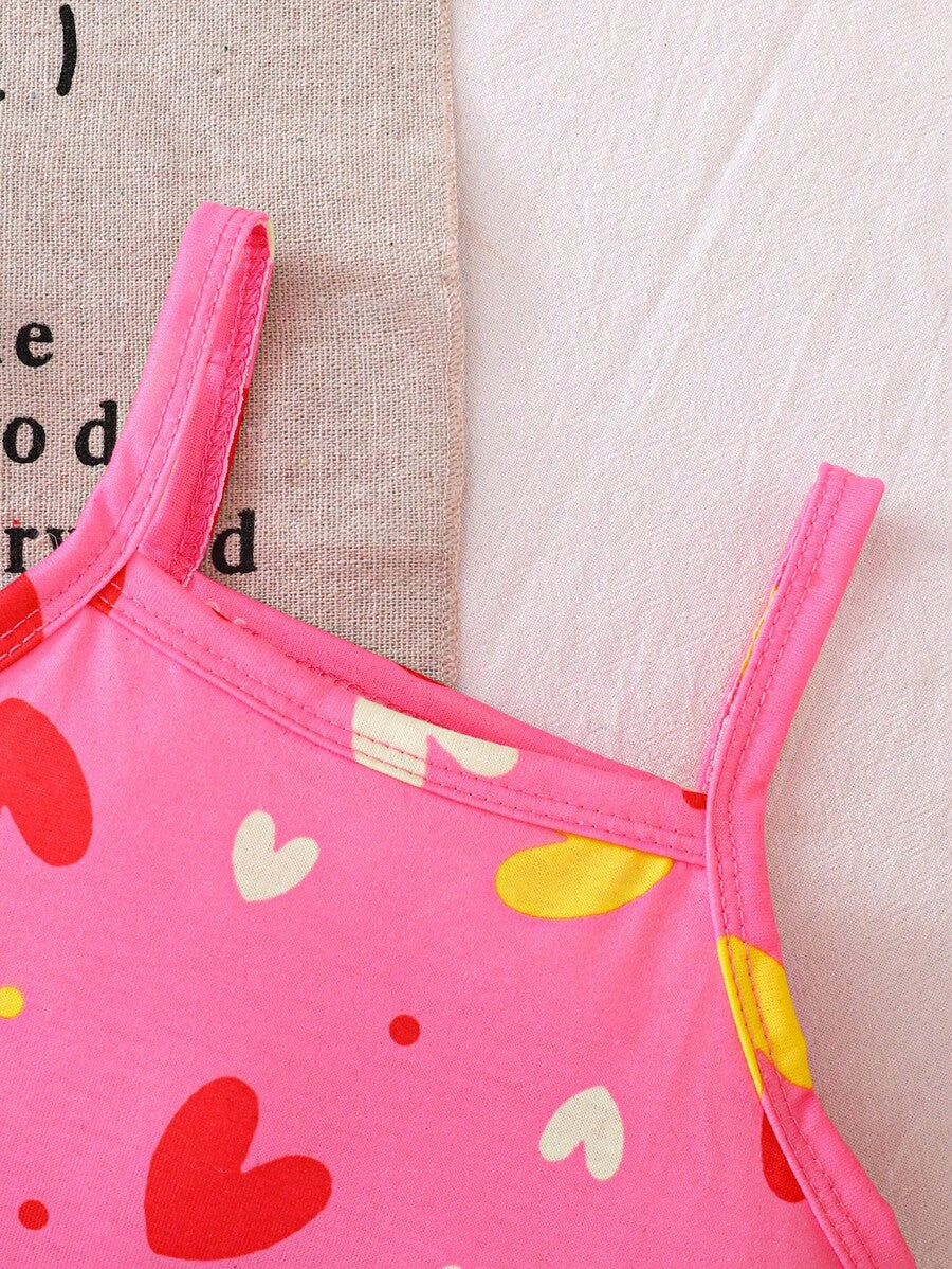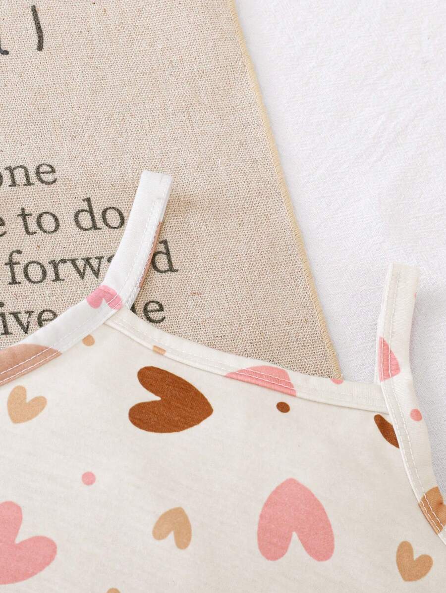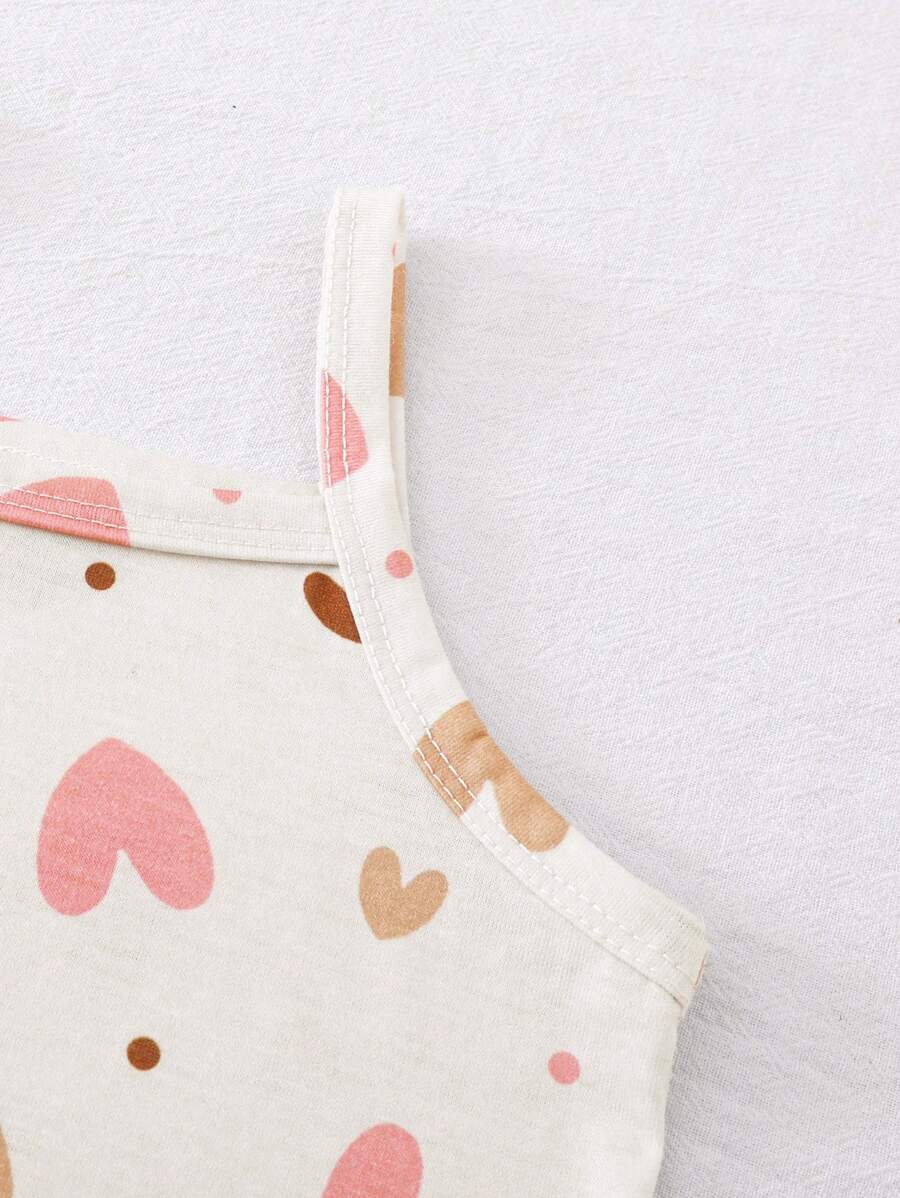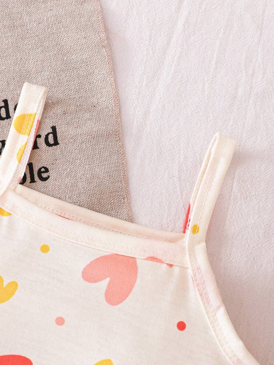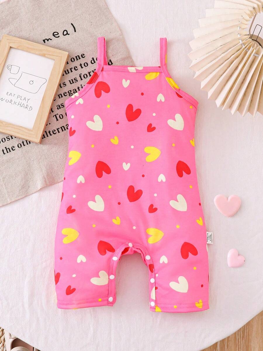 Bebe/nina pequena peto sin mangas con estampado de corazones, conjunto casual comodo y versatil adecuado para que los bebes usen en verano en cualquier ocasion, facil de poner y quitar