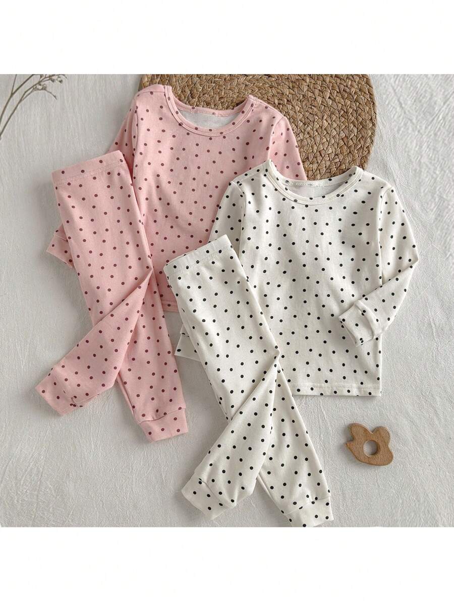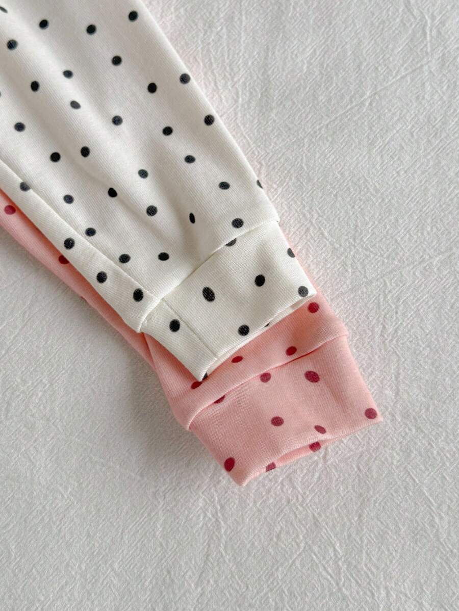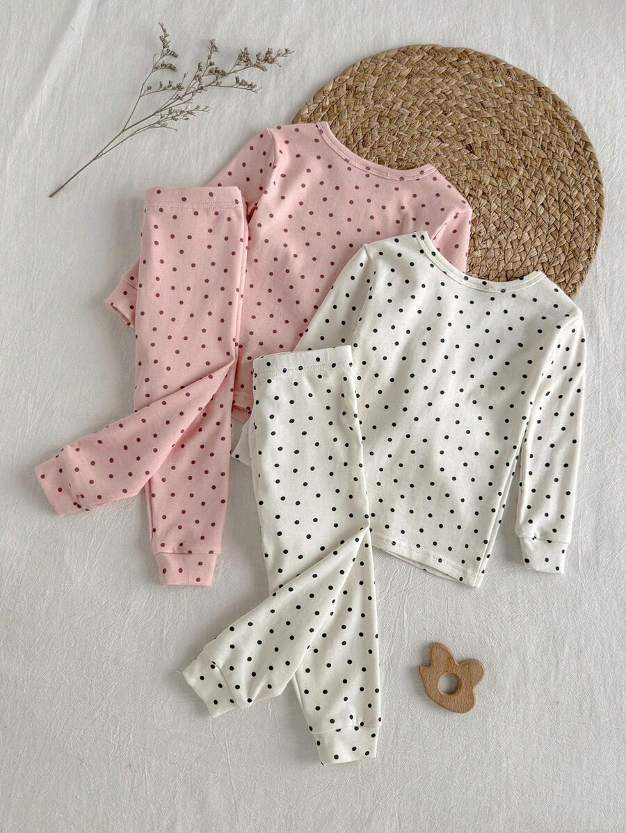 Loomiva conjunto de 4 piezas de pijama ajustado para bebe nina - parte superior de punto de cuello redondo de manga larga con estampado de lunares y pantalones largos de cintura elastica