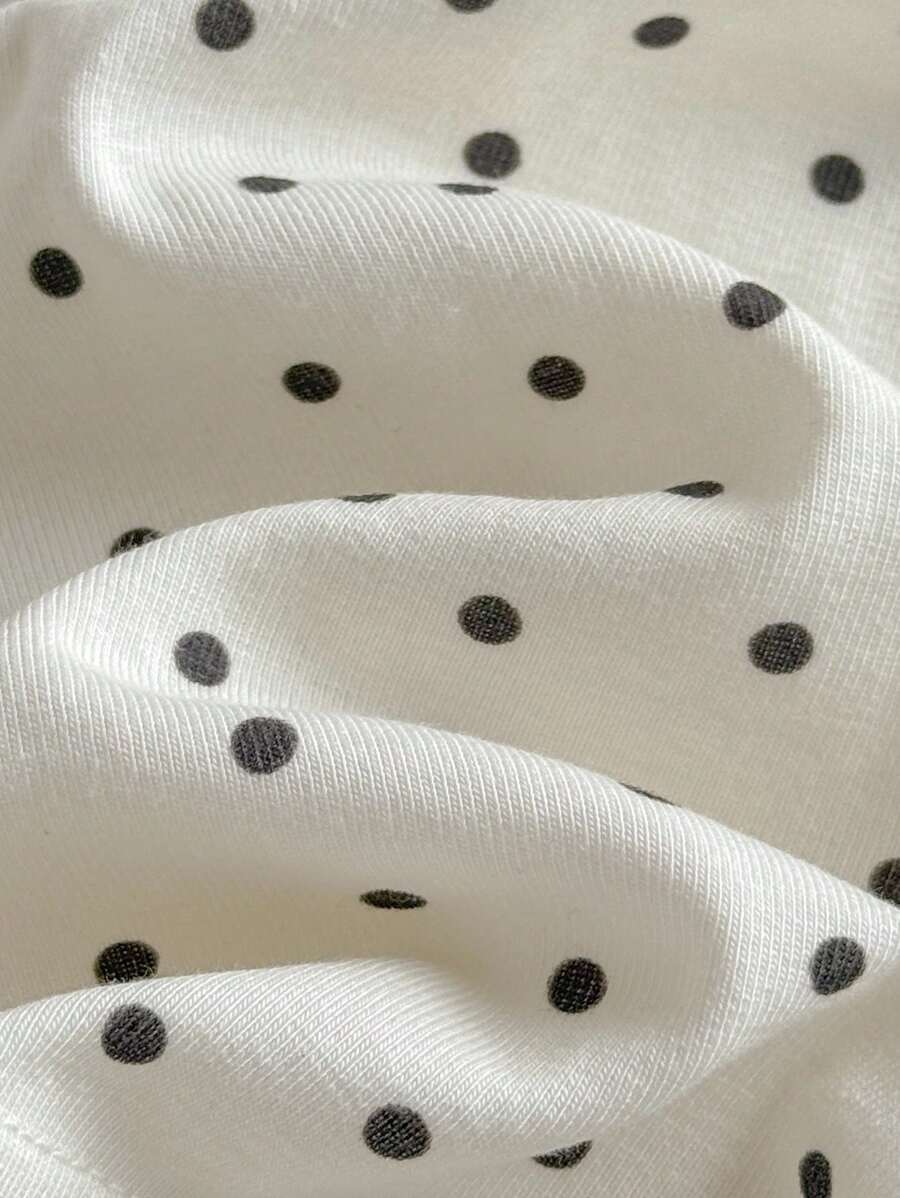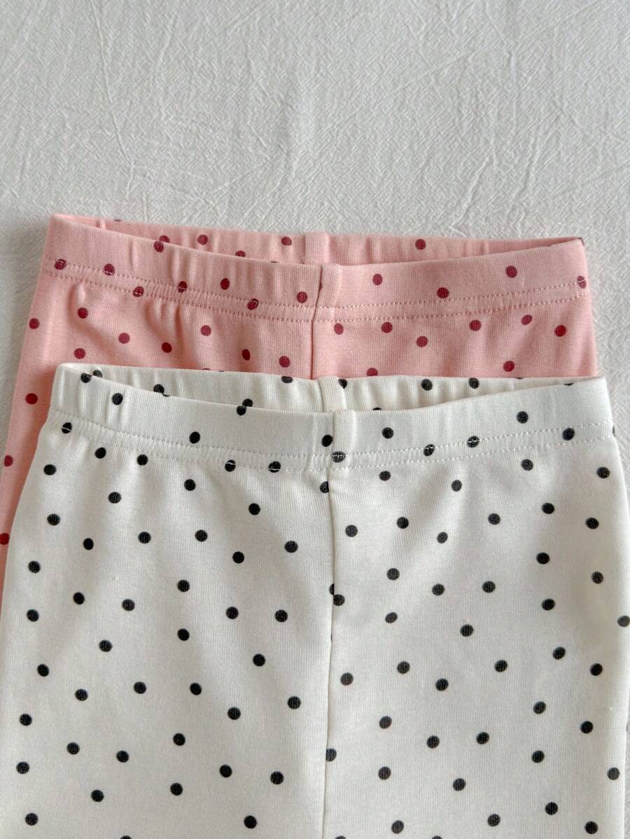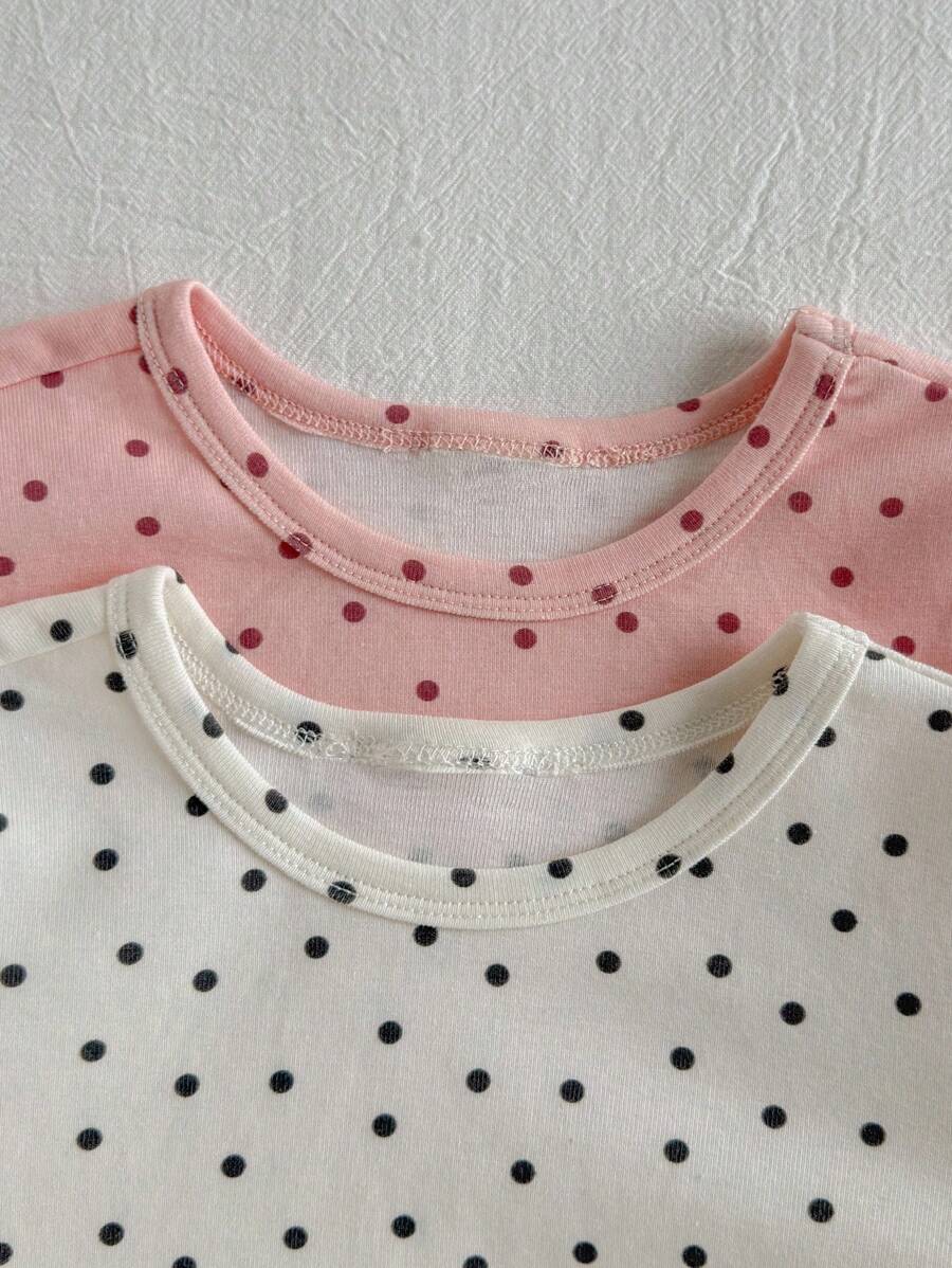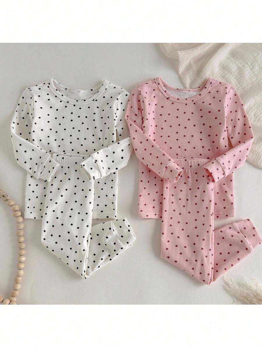 Loomiva conjunto de 4 piezas de pijama ajustado para bebe nina - parte superior de punto de cuello redondo de manga larga con estampado de lunares y pantalones largos de cintura elastica